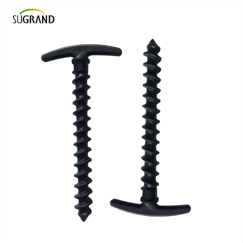Les chevilles en plastique ont une tête de champignons et un arbre avec des sections barbelées pour un verrouillage sécurisé avec le sol. Pour fixer les tissus paysagistes, les nattes de mauvaises herbes, les tapis de paillis au sol.