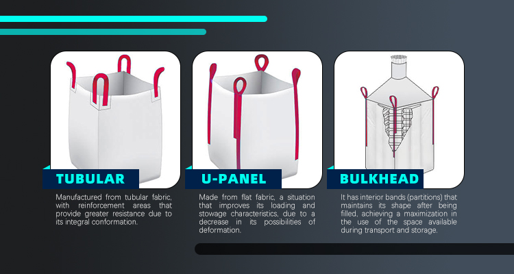 Construits à partir de rubans tissés en polypropylène de haute ténacité et résistance, conçus pour supporter des charges de 300 à 2500 Kg, ils sont présentés dans la gamme de modèles la plus variée : Tubulaire, Plat, U-Panel, avec cloisons, One Loop, entre autres.Chacune de ces conceptions permet des combinaisons alternatives, en tenant compte des exigences du client en termes de capacité de charge, de type de chargement et de déchargement, de systèmes de levage, etc.